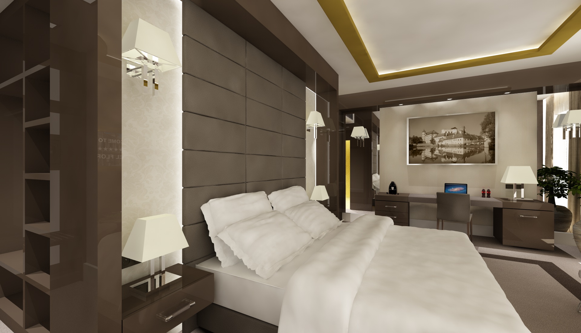 Studie hotelu v Jindřichově Hradci na pozemku Galerie sv. Florián. Hotel je koncipován jako ****