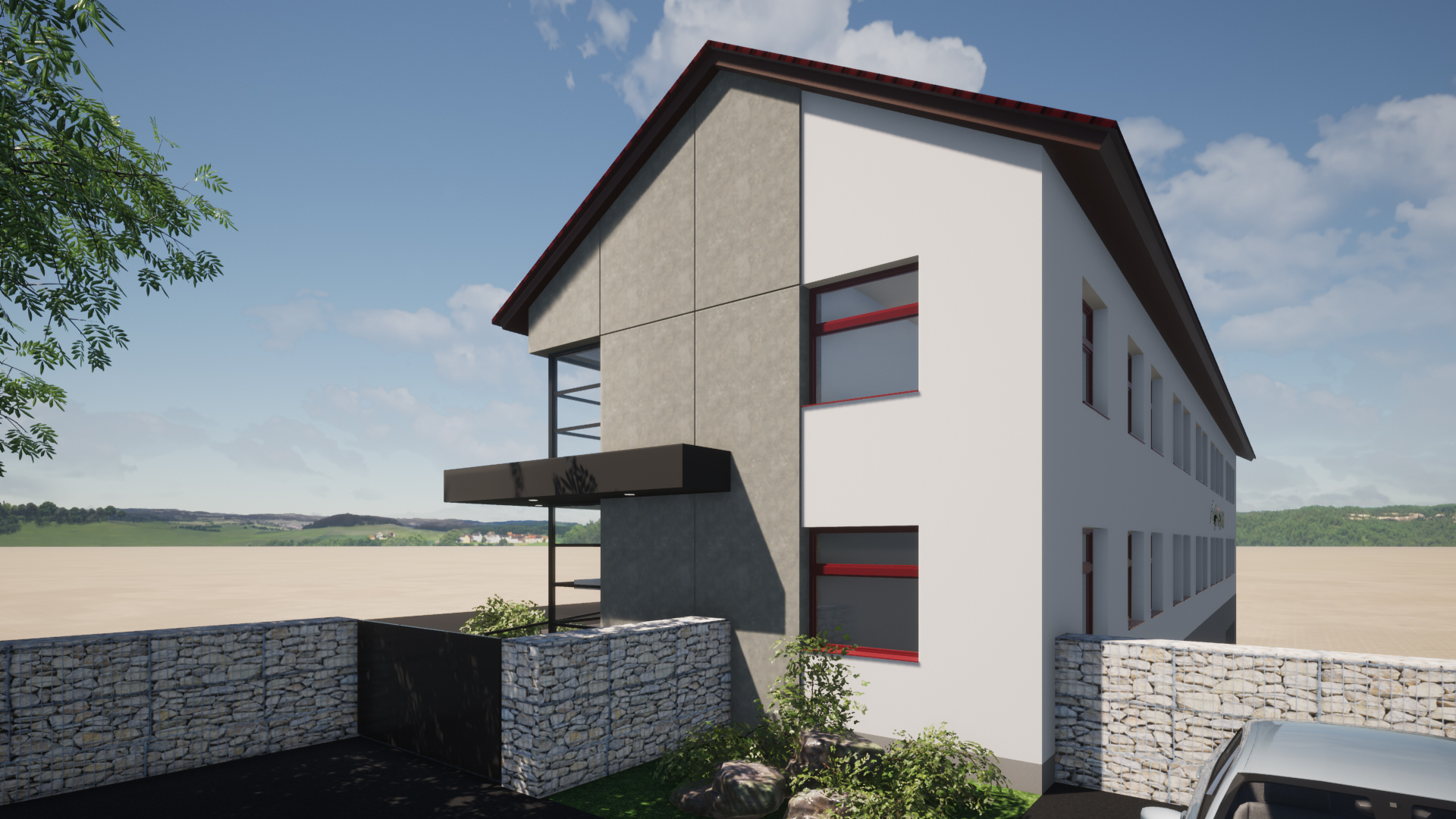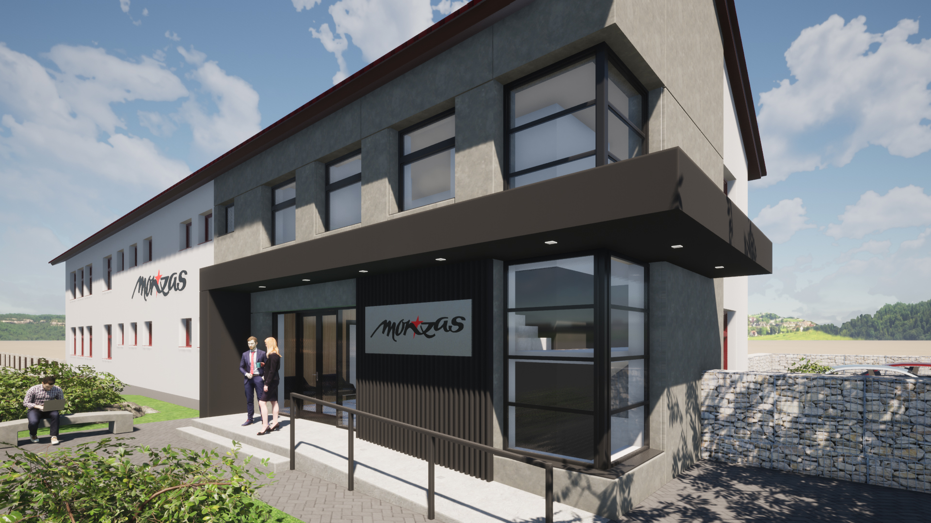 Náš dlouholetý klient Monzas nás oslovil s návrhem rozšíření jejich kancelářské budovy v Běchovicích. Bylo nutné budovu rozšířit, navýšit o patro a přistavět výtah. Navíc jsme navrhli i nový reprezentativní vstup do budovy.